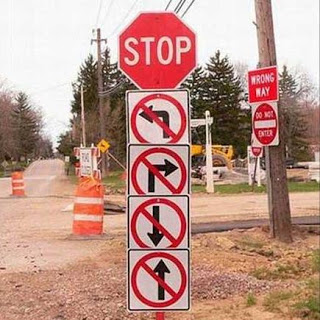 - 5 stop signs, plus a three-way stop, which means taking turns, and you know how great adults are at that.
