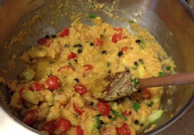 So there I was, letting the sanctioned-substitute-for-superior-French-lentils cook as I chopped the other ingredients, happily excited about the first lentil salad of the season. I had everything together and then checked on the red lentils, about 13 minutes into cooking. I peered in and my hand holding the pot cover hovered and froze. The pot contained yellowy mush, formerly known as separate lentils. The recipe had been right. WTF? How could this happen? I was betrayed by packaging. Was there nothing left to believe in?