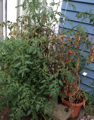 I am not taking the hit for the blight and bugs, though–that’s nature’s doing. And the last several years, I’ve watched in horror as all three or four plants have gone from small green promises to brown, spotted, bug-infested heartbreakers.