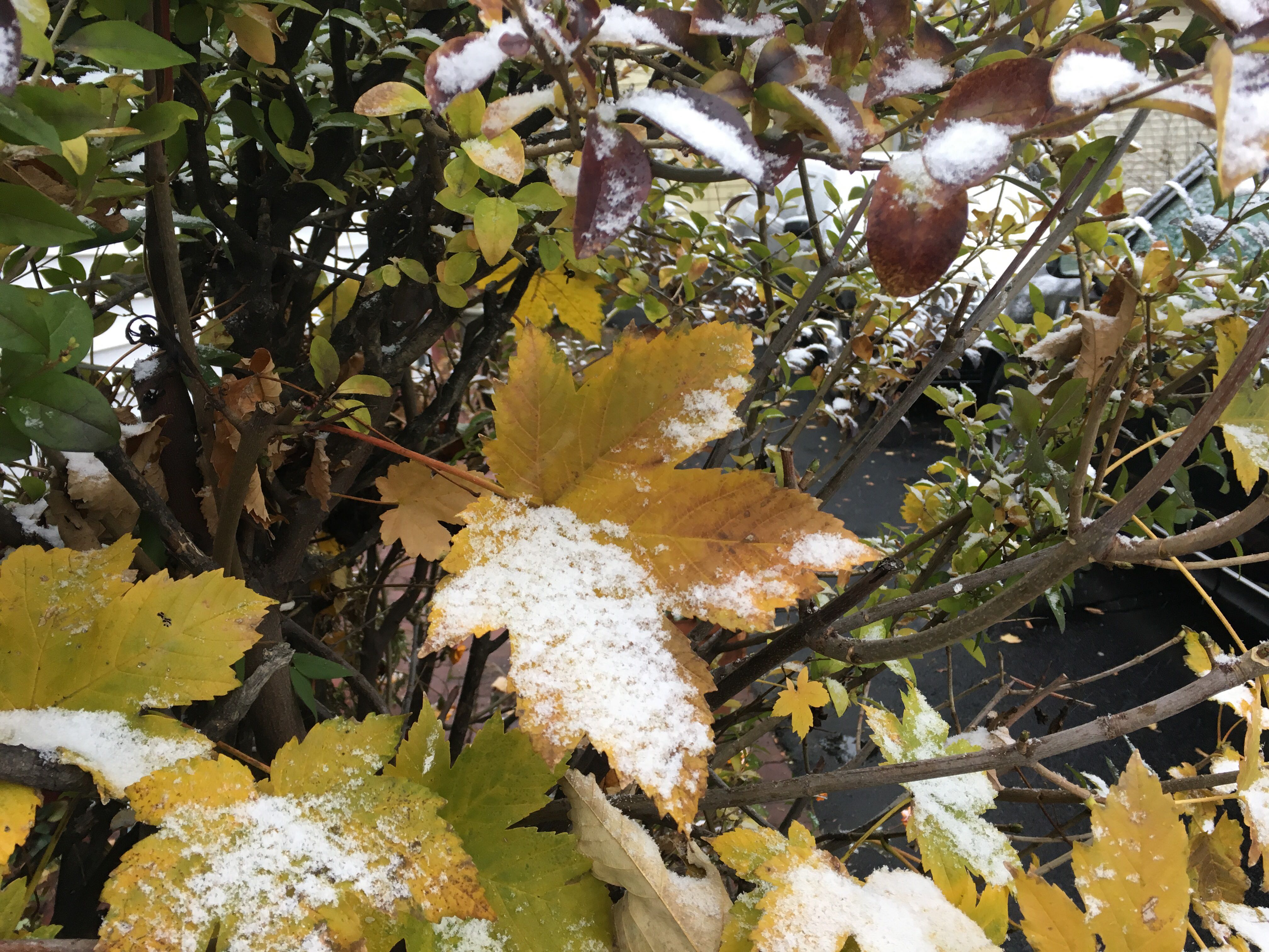 I woke up this morning in a funk that carried over from last night–kind of from the whole weekend, actually. I’d had an OK weekend, really, so it wasn’t obvious where the funk was coming from. As I was trying to pin down what it was so I could kid myself that I could wrestle it to the ground, I looked outside and saw it was snowing. Great. I usually get excited for the first snow of the season, but all I could think of was having to brush off the car and slogging in it.