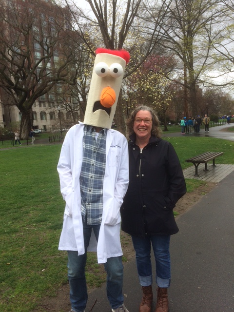 So, yeah, science needs some defenders, and that’s why I was so excited to see another part of my childhood at the march, Beaker, from The Muppet Show who is the long-suffering assistant of Dr. Bunsen Honeydew. I know Beaker is a true man of science because only a scientist would have the patience to get waylaid by a grinning middle-aged women who busted in just after a kid got his picture with him. OK, maybe he was a little scared too, but the point is we all have something to contribute — as users of science, practitioners of science, or fictional characters based on science. Eyes wide open, we’re watching.