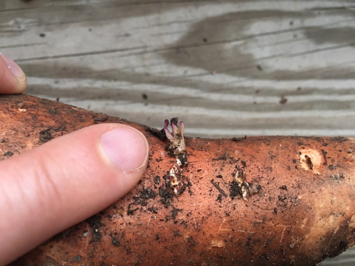 P.P.S. Came home from work to discover my planted sweet potato thusly dug up and defiled as well as the slip:
