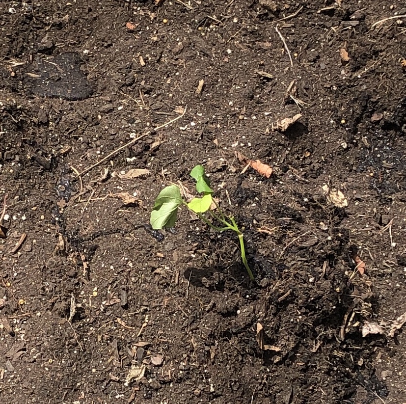 I only brought 1/2 gallon of water with me and the dirt was so dry it mostly ran off the plants. But a hard rain fell a couple of hours later, so I’m hoping they got a good soaking, but they may have also gotten pummeled a bit before they were ready. I know the feeling. I’ve read that sweet potatoes thrive in poor soil, so with a little watering help from me, these babies should have it made. And like me, maybe all they need is some space, sun, and a small helping hand.