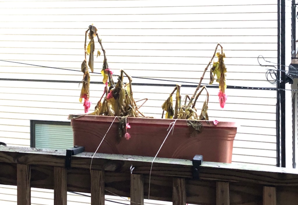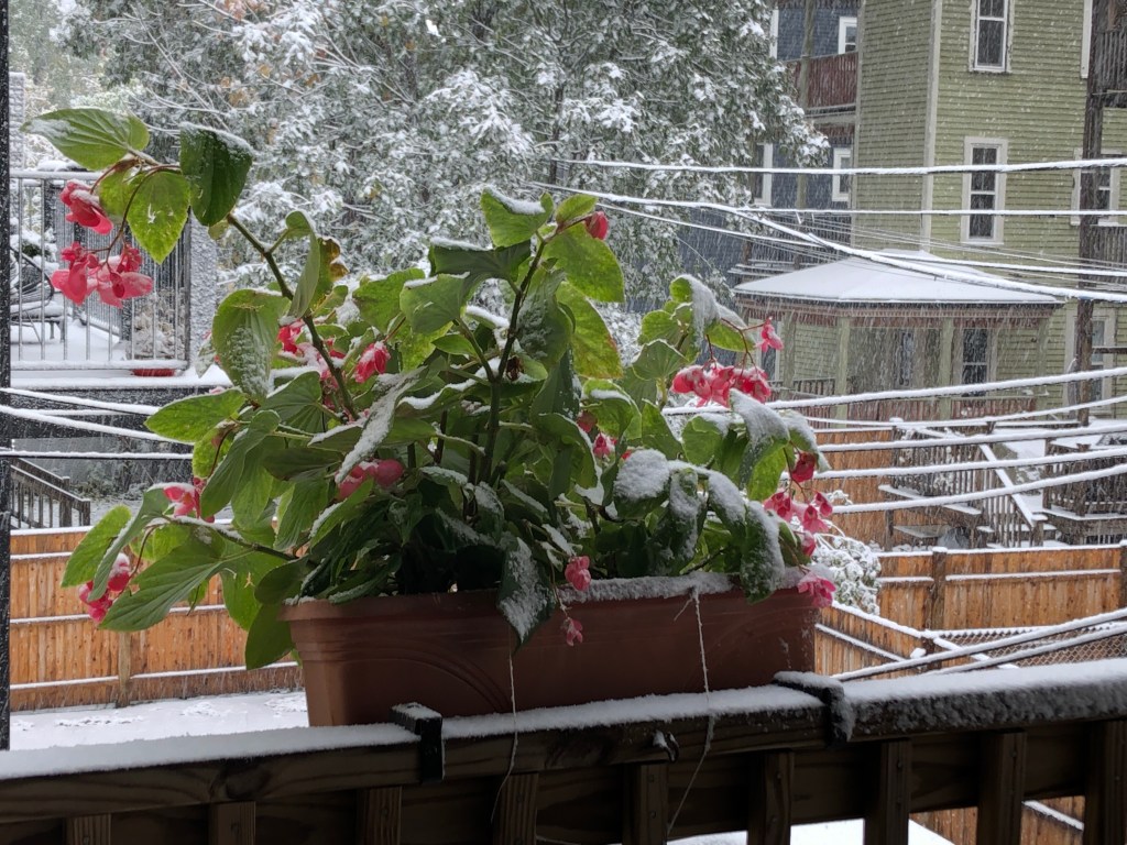 And then there were my window box begonias, which had continued to thrive even with the cool fall days and nights. I had taken down my other plants, but I couldn’t bear to prematurely destroy their resplendent green leaves and sumptuous blooms.