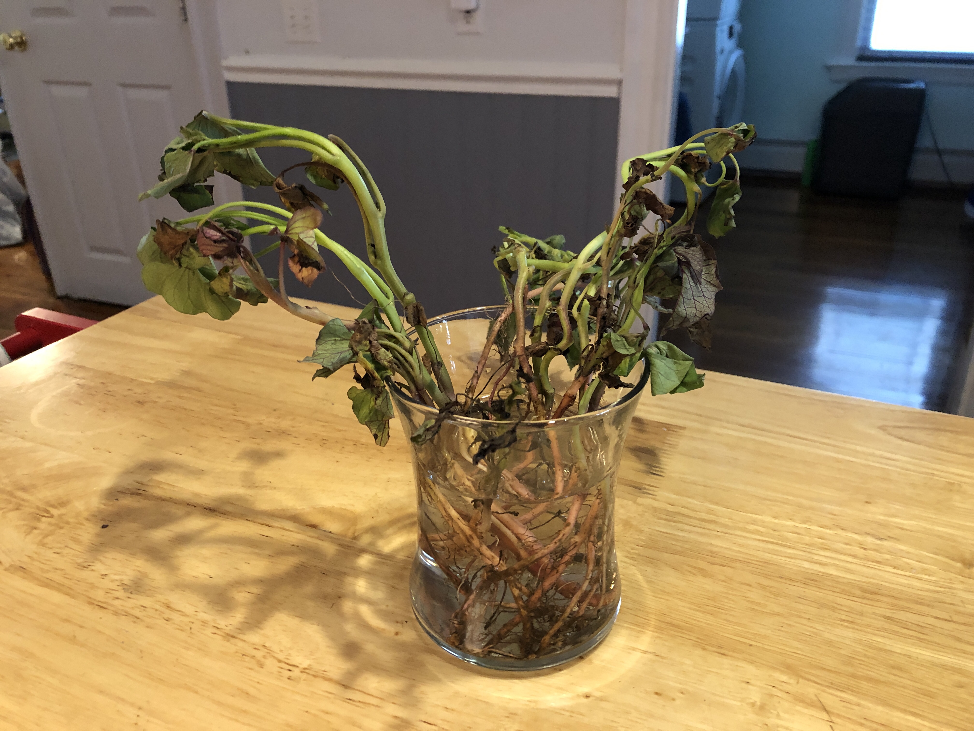 Sure, they look like a half dead rag tag army of stealthy plants, but very soon they will be a quarter dead rag tag army of stealthy sweet potato plants in an abandoned raised bed in a school yard. In the northeast.