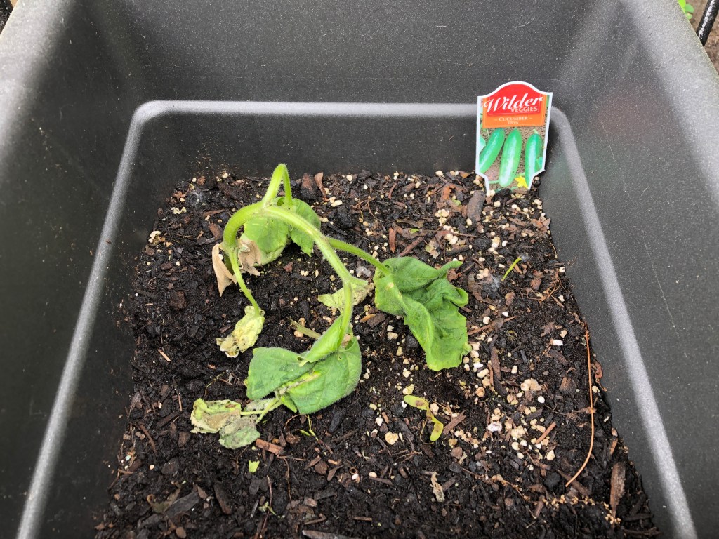 Except for the cukes. One plant was down and the other one was listing. I don’t think it’s going to make it.