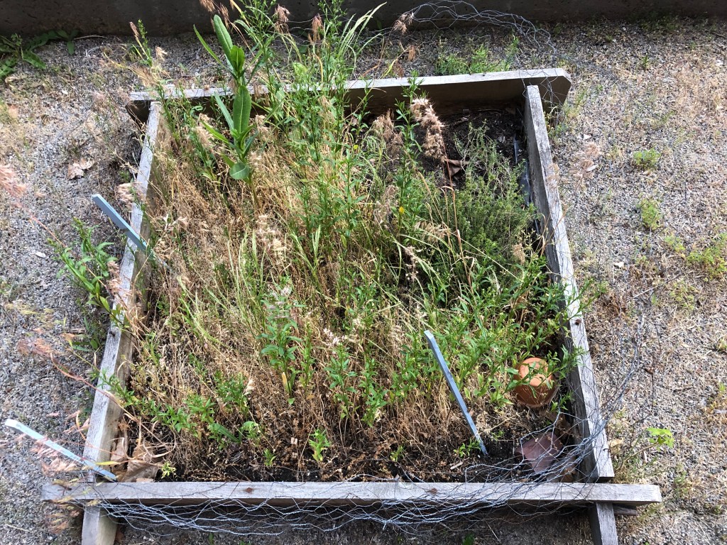 One plot still has some flowers that have survived, so I am letting them be. The other plot has some rosemary that I left — same deal. They certainly have earned it surviving at least 2 winters and possibly more.