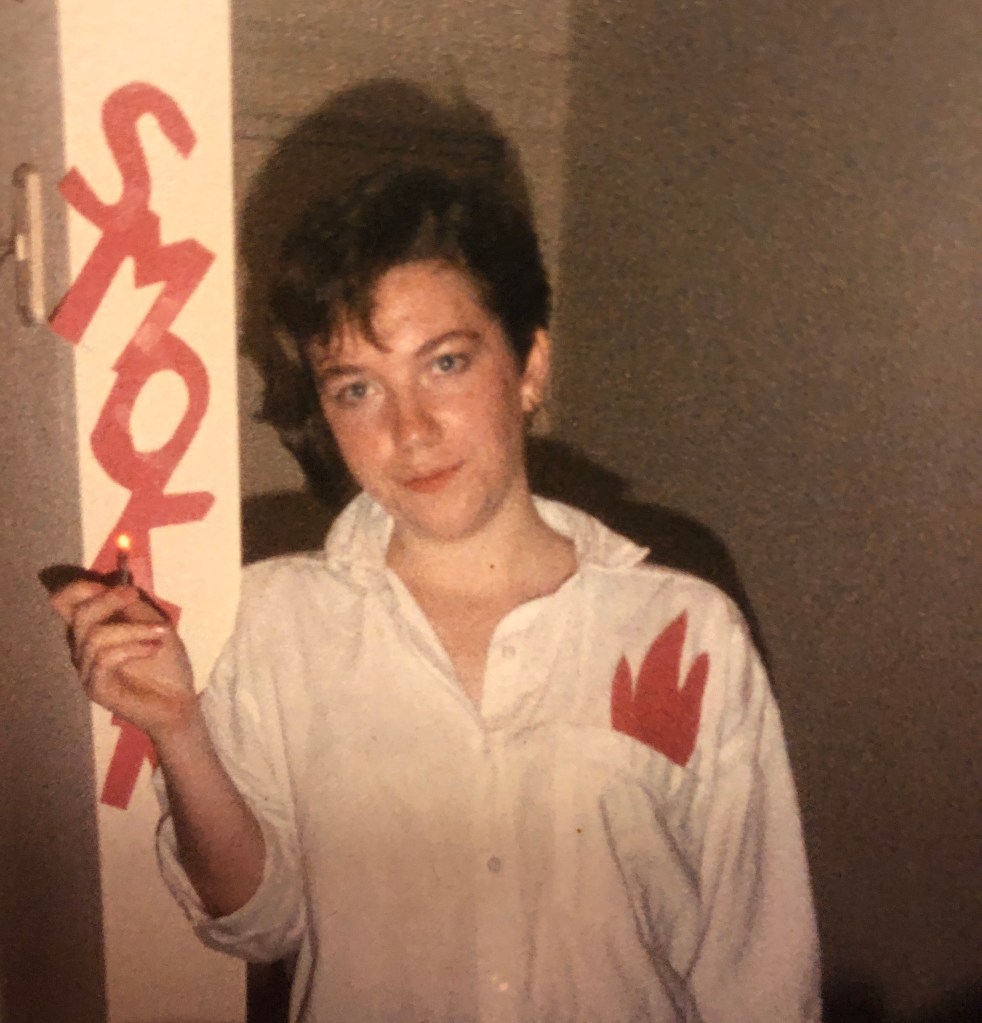 Notice the fire theme? “Smoke” spelled out on the wall, paper flames coming out of my pocket, and I’m holding a lit match.