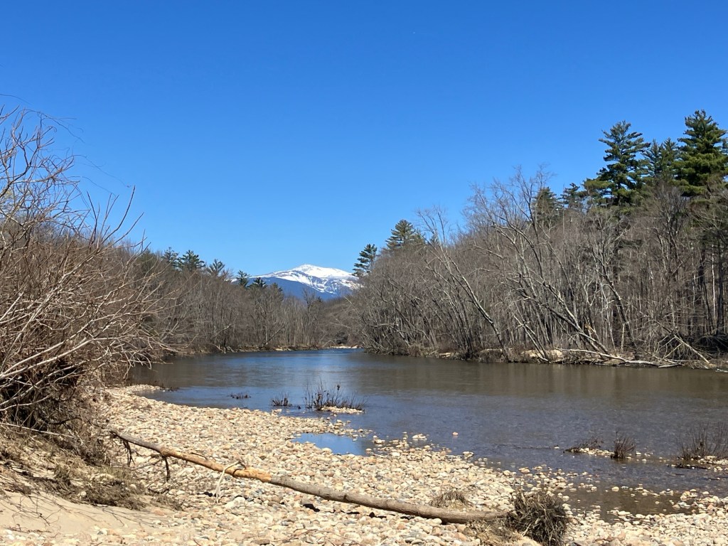 And here is one of the stops upriver from our camp site with a snow capped Mt. Washington in the background.