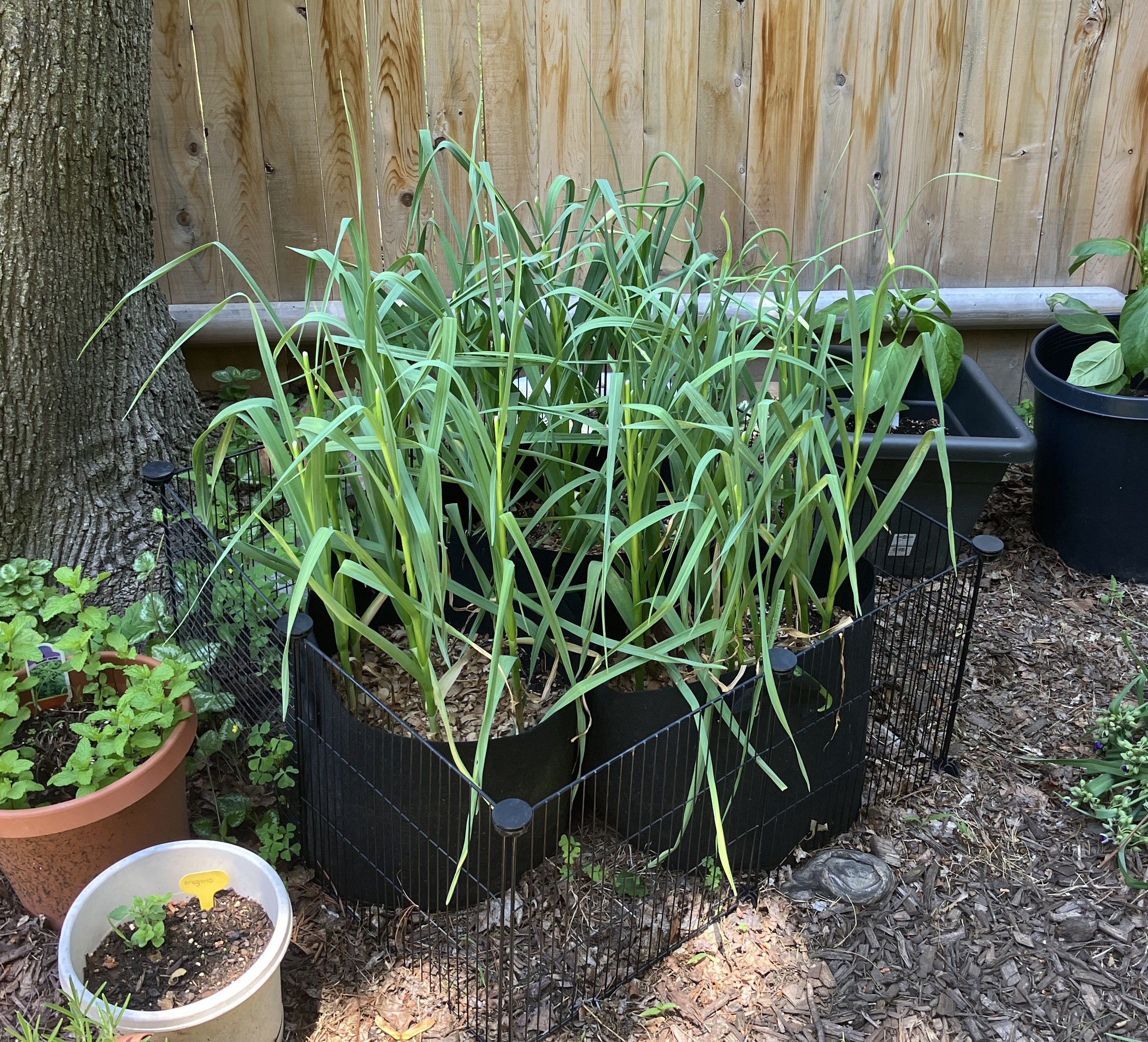 The herbs are behaving themselves, and the mint and oregano came back from last year. Yay!