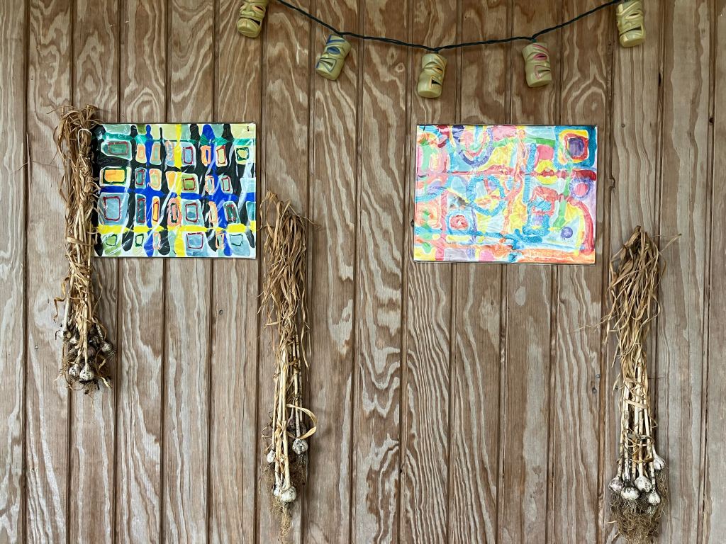The big win is the gahlic! I’m so excited that after 3 tries, I think I’ve got it right. I harvested the scapes in June and got the heads out in early July, about 30–woo hoo! Shout out to my brother who sent me the seed garlic in the fall from his grown-up garden in Maine. I am an impatient gardener, so I love having garlic to distract me while I’m waiting for all the other plants to grow, get flowers, yada, yada, yada. It takes foreeeeeeeeeever.